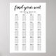 Simples Recepção de casamento de Script de Caligrafia Elegante Encontre seu assento. Um design minimalista em preto e branco ou qualquer cor de fundo que você escolher. Basta clicar no link personalizar mais, mostrado na área de personalização de texto à direita, e escolher seu fundo de cor personalizado. Este poster de placa faz com que seja rápido e fácil criar acréscimos incríveis à decoração do casamento. Os sinais podem ser ampliados, há muitos tamanhos a serem escolhidos, assim como opções de enquadramento e correspondência personalizados.