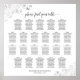 Este simples e elegante quadro de assentos de casamento contém espaço para 220 nomes em 22 mesas com os tradicionais 10 assentos por mesa. O design preto e branco apresenta um título de caligrafia de script de cinza pálida, e fritas de folha fina prateada nos cantos. Uma maneira maravilhosa de ajudar seus convidados a encontrar suas mesas enquanto adiciona classe, elegância e estilo à sua recepção de casamento.