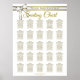 Torne sua recepção de casamento bonita com este assento. Projetado como parte de nossa Suite de Casamento de Fita Branca e Dourada, ele apresenta um design simples, mas elegante, com texto dourado sobre fundo branco, com fita branca e arco com trim dourado. Este gráfico mostra as atribuições de mesa para que seus convidados tenham facilidade em encontrar a mesa certa.