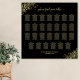 Este lindo quadro de assentos de casamento tem 27 mesas em 10 lugares por mesa ou 270 convidados. Apresenta um simples, mas elegante design com texto dourado sobre fundo preto e um filme decorativo de folha de ouro decorativo nos cantos. O título está escrito em caligrafia de script de rico e diz: Por favor, encontre sua mesa. Na moda e sofisticado!