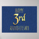 design do 3º aniversário sobre um fundo azul de couro azul. Pode ser usado para qualquer tipo de 3º aniversário.
