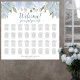 Este maravilhoso gráfico de assentos de casamento, que pode acomodar até 320 hóspedes, ostenta um charmoso, rústico design floral de aquarela, pintado à mão e adornada com rosas, flores e várias folhagens verdes em tons suaves de azul empoeirado e verde-sábio. O título, escrito em elegante, caligrafia guiada, convida convidados a "Bem-vindos! Por favor, localize sua mesa". Com 32 mesas, cada uma acomodando 10 assentos, este gráfico serve não apenas como uma saudação quente e convidativa para seus convidados, mas também como uma ferramenta funcional para ajudá-los a encontrar seus assentos designados. O gráfico também inclui uma seção na parte inferior para mostrar os nomes do casal e a data do casamento.