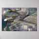 Póster 3D Anaglyph do P51 n Spitfire sobre o aeródromo