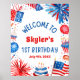 Celebre o primeiro aniversário do seu filho com o nosso Sinal de Boas-vindas Patriótico de 4 de julho! Esse sinal vibrante apresenta um design vermelho, branco e azul com estrelas, listras e fogos de artifício, perfeito para marcar o tom festivo. Personalizado com o nome do seu filho, cumprimenta calorosamente seus convidados para se juntarem à diversão. Os detalhes da parte, incluindo data, hora e local, são claramente exibidos para sua conveniência. Impresso em material de alta qualidade, ele garante durabilidade durante toda a celebração. Faça seu primeiro aniversário inesquecível com este sinal de boas-vindas!