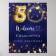 Um poster de boas-vindas para uma festa de aniversário 50ª. Um fundo azul marinho com estrelas douradas elegantes. A cor azul é irregular. Personalize e adicione uma foto, nome e texto. Cartas brancas.