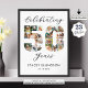 50º Aniversário Número 50 23 Colagem de Fotos Sinal de Poster. Comemore um aniversário de 50 anos com este símbolo personalizável de fotografia com seu título personalizado (mostrado com CELEBRATING 50 ANOS em uma tipografia moderna editável de script de caligrafia), uma colagem de fotos de 23 fotos na forma do número 50 e nome e data de nascimento ou outro texto personalizado abaixo. Escolha seus próprios estilos de fonte de texto e todas as cores para criar sua própria aparência ou para coordenar com as cores do tema da sua parte. Utilize como um sinal de boas-vindas festa de aniversário saudando convidados do partido e honrando o convidado de honra ou transferindo-o para outro produto para dar como um presente comemorativo. A design também pode ser usada para celebrar o 50º aniversário de casamento. OPÇÕES: O exemplo é mostrado em um tamanho de 18x24 pol em Papel de Valor (Matte); outros tamanhos de impressão padrão e personalizados, qualidade e enquadramento de papel, arquivo de Download Digital Instantâneo para impressão local ou transferência do design para um conselho de espuma, faixa, canvas ou outras opções de produto estão disponíveis na página de pedido. DICA DE REDIMENSIONAMENTO: Escolha Tamanho Personalizado para bordas pares alterando a altura e a largura proporcionalmente após clicar no ícone UNLOCK (parece um link de cadeia). ASSISTÊNCIA: para obter ajuda com a modificação ou personalização do design, alteração de cor, redimensionamento ou transferência do design, entre em contato com o designer ANTES DE ENCOMENDAR através da guia MENSAGEM de Bate-papo Zazzle ou envie um e-mail para makeitaboutyoustore@gmail.com.
