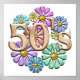 Compartilhe suas boas memórias do retrato da década de 1950 com este design de aparência metálica divertida com flores e grandes números de latão - 50.