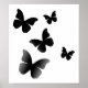 5 Borboletas pretas impressas em vestuário, material de escritório, favoritos para festas, cartões e muito mais.