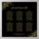 Este gráfico de 6 mesas é simples e elegante, com texto dourado sobre fundo preto e filigre floral herdado nos cantos. O título diz "por favor encontre sua mesa" em uma caligrafia elegante. Sofisticado e chique. Inclui atribuições de mesa para 60 convidados com 10 lugares por mesa.
