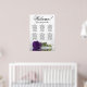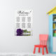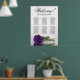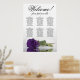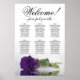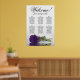 Este lindo gráfico de assentos de casamento tem seis mesas, cada uma acomodando 10 convidados, totalizando 60 convidados. O gráfico apresenta uma design romântica, mostrando um rosa roxo roxo real profundo, há muito solteiro, que repousa delicadamente de seu lado e reflete numa piscina serena de água. O título do gráfico, renderizado na elegante caligrafia, convida calorosamente os convidados com "Bem-vindo! Por favor, encontre sua mesa", deixando espaço suficiente na base para os nomes dos casais e a data do casamento. Este quadro serve como uma forma maravilhosa e prática de cumprimentar os seus convidados e ajudá-los a encontrar os lugares que designarem na recepção, exuberando um ar de charme e sofisticação.