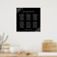 Este gráfico de 6 mesas é simples e elegante, com texto de cinza sobre fundo preto e folha floral de folha de folhas prateada herdada nos cantos. O título diz "por favor encontre sua mesa" em uma caligrafia elegante. Sofisticado e chique. Inclui atribuições de mesa para 60 convidados com 10 lugares por mesa.