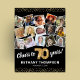 Poster de imagem Elegante de festa de aniversário 70 com fundo na moda preto que pode ser mudado para qualquer cor, uma colagem de 15 fotos ao longo dos anos, o ditado "cai para 70 anos", bordas reluzentes de ouro, seu nome e a data da celebração.