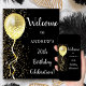 Poster de boas-vindas de 70, personalizável, com um balão de ouro brilhante, com um chá de brilho dourado sobre fundo preto.