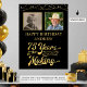 Comemore um aniversário de 75 anos com este símbolo de impressão de poster a cores personalizado com um design de título de script de caligrafia em ouro retro com 75 ANOS NO FAZER que incorpora seu ano de nascimento como parte do design, 2 fotos, luzes de cordas e sua mensagem personalizada personalizada personalizada (a amostra mostra NOME DE ANIVERSÁRIO FELIZ) e sua escolha de cor de fundo (mostrada em preto). Faça alterações na EDIT. OPÇÕES: O exemplo é mostrado em um tamanho de 18x24 pol em Papel de Valor (Matte); outros tamanhos de impressão padrão e personalizados, qualidade e enquadramento de papel, arquivo de Download Digital Instantâneo para impressão local ou transferência do design para um conselho de espuma, faixa, canvas ou outras opções de produto estão disponíveis na página de pedido. DICA DE REDIMENSIONAMENTO: Escolha Tamanho Personalizado para bordas pares alterando a altura e a largura proporcionalmente após clicar no ícone UNLOCK (parece um link de cadeia). ASSISTÊNCIA: para obter ajuda com a modificação ou personalização do design, alteração de cor, redimensionamento ou transferência do design, entre em contato com o designer ANTES DE ENCOMENDAR através da guia MENSAGEM de Bate-papo Zazzle ou envie um e-mail para makeitaboutyoustore@gmail.com.