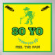80 Anos Sente Que O Velho Dor se agachou por caminhar com bengala. Na parte inferior está "Sinta a dor"