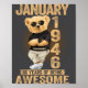 Poster 80 Year Old January 1946 Teddy Bear 80th Birthday