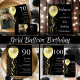 Poster de boas-vindas de 90, personalizável, com um balão de ouro brilhante, com um chá de brilho dourado sobre fundo preto.