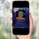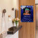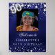 Um poster de boas-vindas para uma festa de aniversário 90. Um fundo azul marinho com estrelas elegantes e falsas prateadas. A cor azul é irregular. Personalize e adicione uma foto, nome e texto. Cartas brancas.
