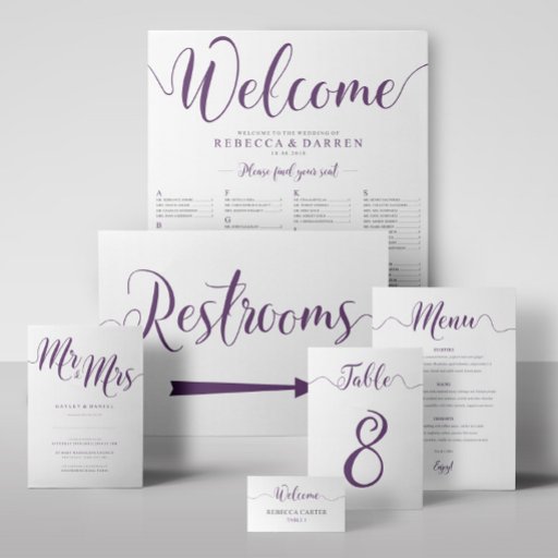 Este gráfico de assento roxo mostra 9 mesas, mas está disponível em uma variedade de layouts de 6 mesas a 18 mesas. Por favor, veja minha loja Zazzle para a coleção de casamento lilac roxo de cheio.