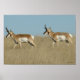 Pronghorn Antelope Bucks Poster. Dois belos prados de antílope atravessando as pradarias secas de grama no final do outono. Reparem no corpo maior da parte traseira, ele é provavelmente o mais velho do par.