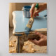 Um gráfico de alta qualidade mostrando a satisfação de um projeto DIY, com foco nas mãos de uma pessoa pintando um pedaço de mobiliário. Este design é perfeito para uma grande variedade de produtos para quem gosta de criar.