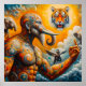 O trabalho de arte retrata uma cena poderosa e mística, misturando elementos da espiritualidade, mitologia e natureza. A figura central expele um senso de serenidade e força, enquanto os animais circundantes somam à aura geral de poder e mística. Figura central A figura central parece ser uma deusa ou uma divindade, adornada com intrincadas joias de ouro e uma expressão serena. Seu rosto meio sombreado poderia simbolizar a dualidade ou uma conexão entre diferentes reinos. Sua gentil interação com o filhote sugere compaixão e harmonia com