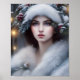 "A Rainha da Neve" linda pintura digital de uma jovem vestida de pele, aparada na casaco de inverno e chapada com bagas e tocas cobertas de neve.