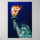 A Estátua da Liberdade com seu Símbolo da Liberdade de Expressão. a imprensa e a busca da felicidade ilumina a tocha da Língua de Sinais Americana (ASL) que ilumina as mentes e as almas das pessoas Surdas.