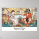 Esta bela pintura da Bela e a Fera é obra do ilustrador Walter Crane. Foi publicada em 1875. Adicionamos uma legenda à imagem identificando o artista,