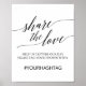 Esta elegante placa de caligrafia negra "compartilhar o amor" é perfeita para um casamento simples. A design neutra apresenta uma poster minimalista decorada com tipografia romântica e caprichosa. Personalize a placa com a hashtag de casamento.