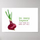 Perfeito para o cozinheiro. Poster apresenta uma cebola e diz "Tantas camadas (mas todas fazem você chorar)" Veja mais na série da cozinha.