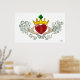 O design distinto de Claddagh apresenta duas mãos batendo um coração, e geralmente é superado por uma coroa. Diz-se frequentemente que os elementos deste símbolo correspondem às qualidades do amor (o coração), da amizade (as mãos) e da lealdade (a coroa). Muitas vezes dado em forma de anel, o Cladagh pode ser usado para amizade, relacionamento, eternidade, noivado ou casamentos, dependendo da intenção do usuário e, no caso de um presente, do doador.
