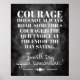 Coragem nem sempre ruge. Às vezes coragem é a voz silenciosa no final do dia dizendo, "Eu vou tentar de novo amanhã." Todos têm seus próprios desafios na vida, sejam grandes ou pequenos. É preciso coragem para encarar as nossas lutas, sejam elas autoaperfeiçoamento, uma nova rotina de exercício, dieta, educação, ou busca pessoal. Cada pequeno passo em direção ao seu objetivo é um passo a menos para completá-lo.