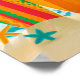 Uma cena de praia de cor brilhante com uma citação relacionada à praia.