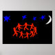 A dança ~ Arte Moderna ~ Imagem colorida moderna inspirada por . Imagem mostra dançarinos vermelhos segurando as mãos em um círculo contra um fundo preto com lua branca e estrelas azuis. Um design único dos artistas do Curio Shoppe. Também temos esta imagem de olhos nos outros produtos. Você nunca sabe o que pode encontrar no The Curio Shoppe!