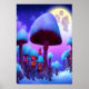 Poster A floresta de cogumelos, noite, lua, neve | Arte A