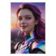 The vibrant magenta and purple hues of her hair perfectly complement the holographic reflections of her suit, making this a standout piece for any sci-fi enthusiast or lover of modern digital art. This high-detail portrait blends a cyberpunk aesthetic with a touch of ethereal beauty, ideal for high-quality prints, tech accessories, or statement home decor.