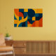 Uma interação ousada de formas geométricas e matizes vibrantes, esta peça abstrato moderna captura o equilíbrio dinâmico através de cor, forma e textura.
