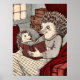 Poster A hedgehog in a blanket reading a book to a young