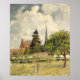 A Igreja em Eragny. Camille Pissarro. Boa paisagem da aldeia. Igreja da aldeia com aranha. As árvores crescem por perto. No primeiro plano está um campo. Há uma grande nuvem no céu. Reprodução de famosas imagens de arte no dominio público.
