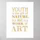 "A juventude é a dádiva da natureza, mas a idade é uma obra de arte." É hora de comemorar a envelhecer! Este design apresenta o texto marrom-claro-ouro em um estilo de tipografia mista em um fundo branco. Totalmente personalizável, use a opção personalizar para alterar o estilo/tamanho/cor da fonte ou para alterar a cor do plano de fundo, se desejar. Design © 2018 Nancy Lalonde