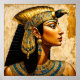 "A Legendária Cleópatra VII". Esta pintura estilizada artística de Cleópatra VII traz à tona suas características faciais distintas: um nariz proeminente, olhos de amêndoa, e um queixo forte. Seu cabelo trançado, enfeitado com pedra precioso azul e ouro, é revestido com um diadema ouro em forma de urubu que simbolizava pureza e maternidade, e também o eterno ciclo da morte e renascimento. A rica paleta de cores da pintura e os detalhes intrincados capturam sua essência real e charme intelectual.