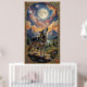 Poster A lone wolf howls at a moon