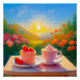 Esta pintura captura uma tarde pacífica e lúcida cheia de momentos doces do tempo de sobremesa 🍓 🍰 ☕. À distância, há um céu azul claro, um sol brilhante, e montanhas cuidadosamente coloridas. Perto, vibrantes flores rosa e vermelha estão em flor de cheio, permitindo que você sinta a beleza da natureza. Na mesa de madeira, um bolo de morango e um latte de morango revestidos com creme branco e macio criam uma cena perfeita, fazer o momento ainda mais especial. A cena parece que está mostrando o momento mais doce e relaxante do dia. Tudo se combina em paz e conforto, e toda vez que você olha para esta pintura, você sentirá felicidade e calma. As cores brilhantes e quentes da pintura elevam o humor do espectador, fazer-os a se sentirem ainda melhor. Através desta trabalho de arte, espero que muitas pessoas possam descansar de suas vidas ocupadas, encontrar um momento de relaxamento, e experimentar um tempo de cura. É meu desejo que um pouco de felicidade e paz sejam adicionados à sua vida. 🙏 ❤️