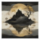 Esta pintura retrata uma floresta lua, com uma árvore solitária em pé. A lua e a montanha refletem-se na água abaixo, criando uma bela e serena cena. A pintura é um lembrete da beleza e mistério da natureza.