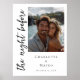 Adicione um toque pessoal e elegante ao seu janto de ensaio com este símbolo de boas-vindas "a noite anterior", maravilhosamente desenhado. Este sinal editável permite-lhe carregar a sua própria fotografia como pano de fundo - fazer-a exclusivamente sua. Perfeito para saudar convidados no seu evento, este modelo é totalmente personalizável. Atualize facilmente os nomes, a data do evento e a foto favorita para corresponder ao seu estilo. Carregue e mostre sua própria foto como pano de fundo Faça uma impressionante primeira impressão com um sinal que reflete sua história de amor e define o tom para seu dia especial.