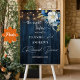 Uma elegante design de Casamento com elegante caligrafia completada por maravilhosas madeiras azuis, luzes de cordas de jardim e floral azul branco com brilho dourado. Você pode personalizar isso com seus detalhes.