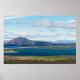 Poster A paisagem da manhã da Islândia com fazendas em um