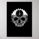 Um crânio feito de engrenagens com um relógio embutido na testa.