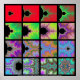 Uma série de ampliações em todo o conjunto fractal de Mandlebrot.
